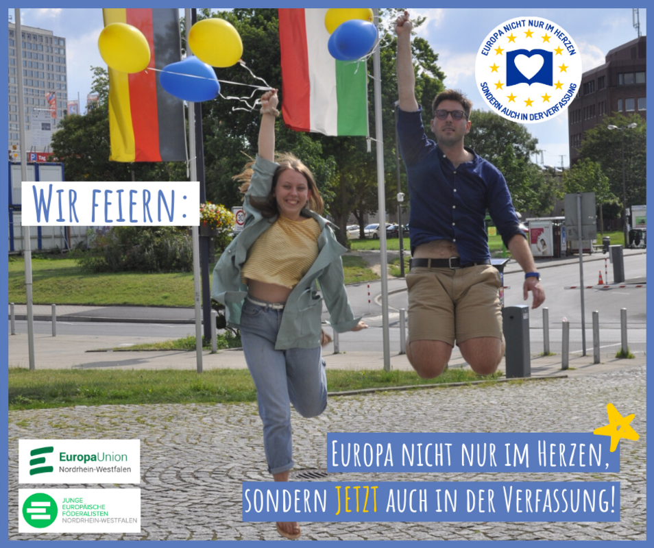25.06.2020: Der Landtag hat entschieden - NRW bekommt ein Europa-Bekenntnis! Unser Werben für eine Verfassungsänderung in NRW war also erfolgreich – passend zum 70-jährigen Jubiläum fügt NRW seiner Landesverfassung an prominenter Stelle ein Bekenntnis zu Europa hinzu. Damit steht dort endlich schwarz auf weiß, was von Jahr zu Jahr deutlicher wird: NRW ist ein wichtiger Teil Europas – und Europa längst Bestandteil des nordrhein-westfälischen Alltags.