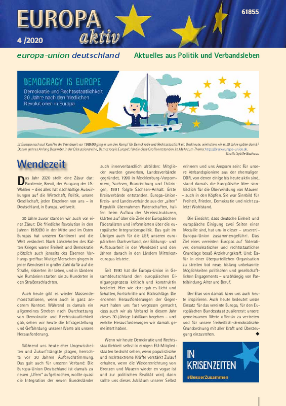 Frisch aus dem Druck: Mitgliedszeitschrift Europa aktiv 4-2020