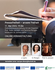 Diskussion mit Gemma Pörzgen (Chefredakteurin der Zeitschrift „Ost-West. Europäische Perspektiven“ und Vorstandsmitglied von „Reporter ohne Grenzen“) und EU-Experte Prof. Siebo Janssen.