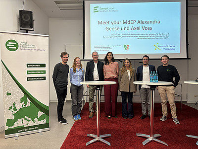 Die Europa-Union NRW hat mit dem Dialogformat Meet your MdEP Bürgerinnen und Bürger mit Abgeordneten des Europäischen Parlaments zusammengebracht. Ziel ist es, eine nachhaltige Plattform für persönlichen Austausch zu schaffen und den Dialog zwischen Politik und Gesellschaft zu stärken.